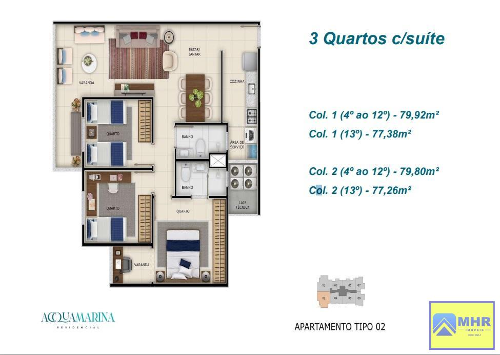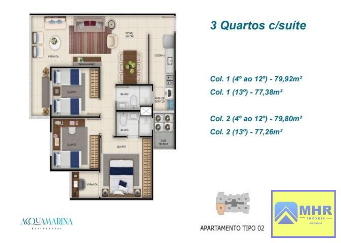 Área Total de 79,80 m², Área Construída com 79,80 m².