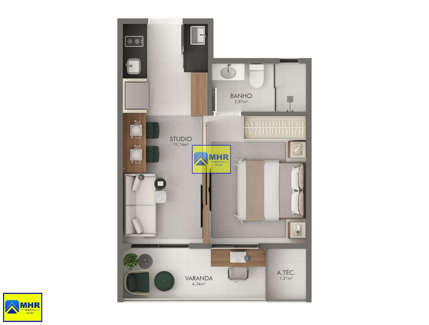 Cômodos: Banheiro Social, Cozinha, Área de Serviço, Sala de Tv / Jantar, Varanda Gourmet, 2 Quartos, sendo 1 suíte.