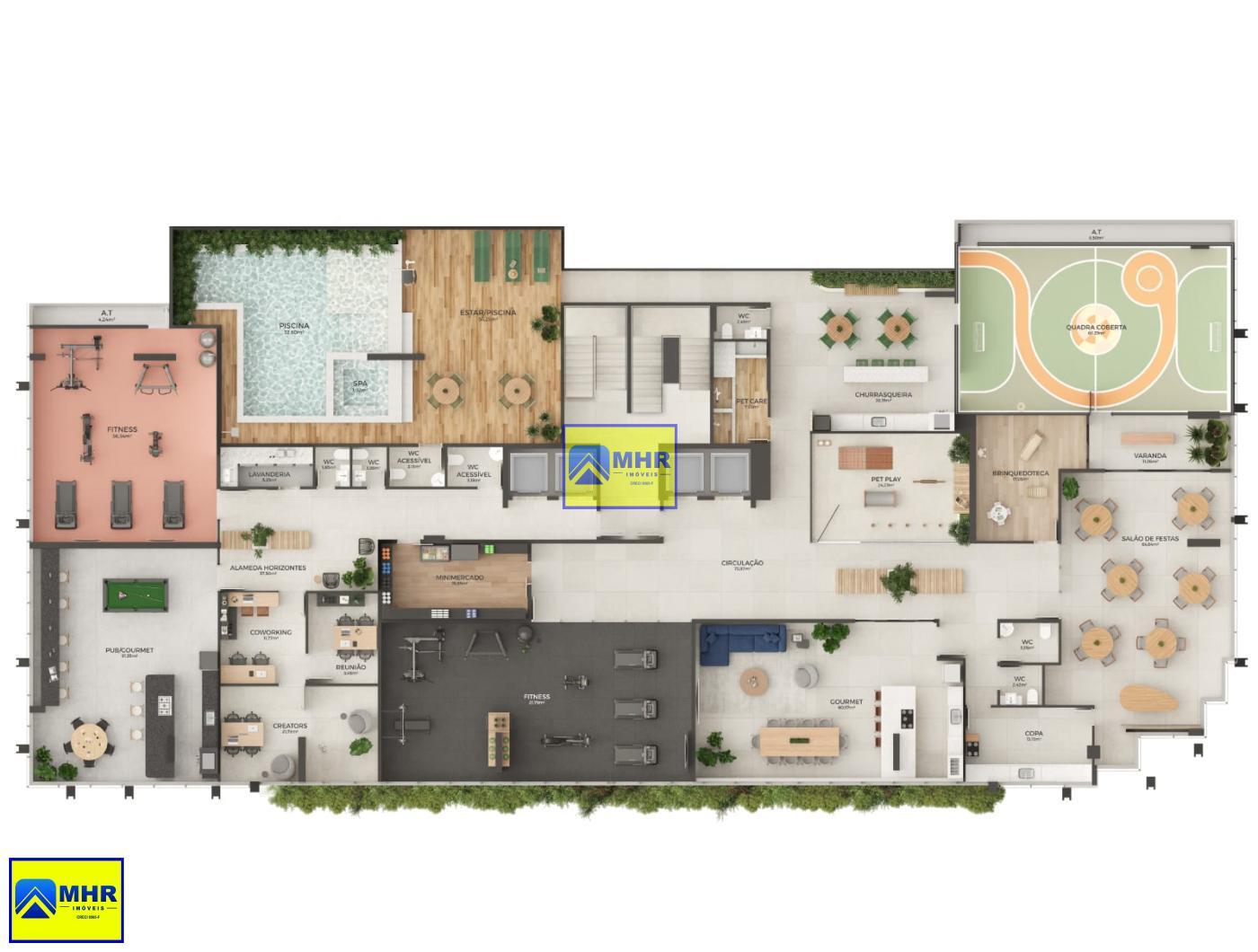 Lazer: Academia, Bicicletário, Churrasqueira, Espaço Gourmet, Lounge, Pet Care, Playground, Quadra Poliesportiva, Sala de ginástica, Sport Bar, Piscina Adulto e Infantil, Piscina, Sauna, Salão de Festas, Salão de Jogos, Bike-share, Brinquedoteca.